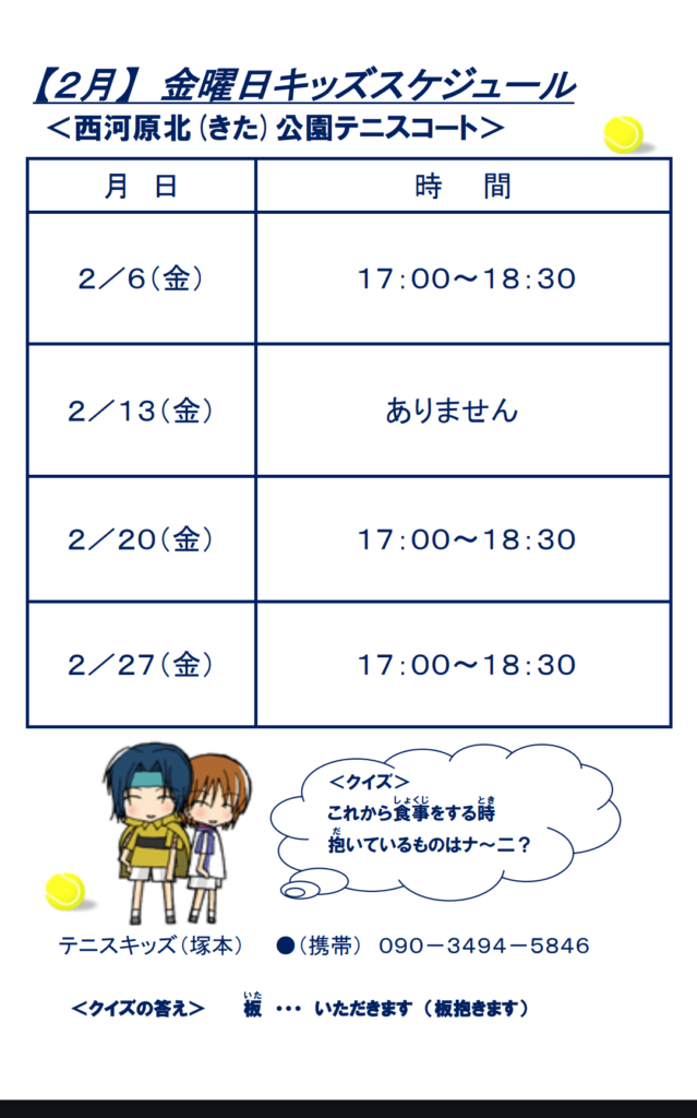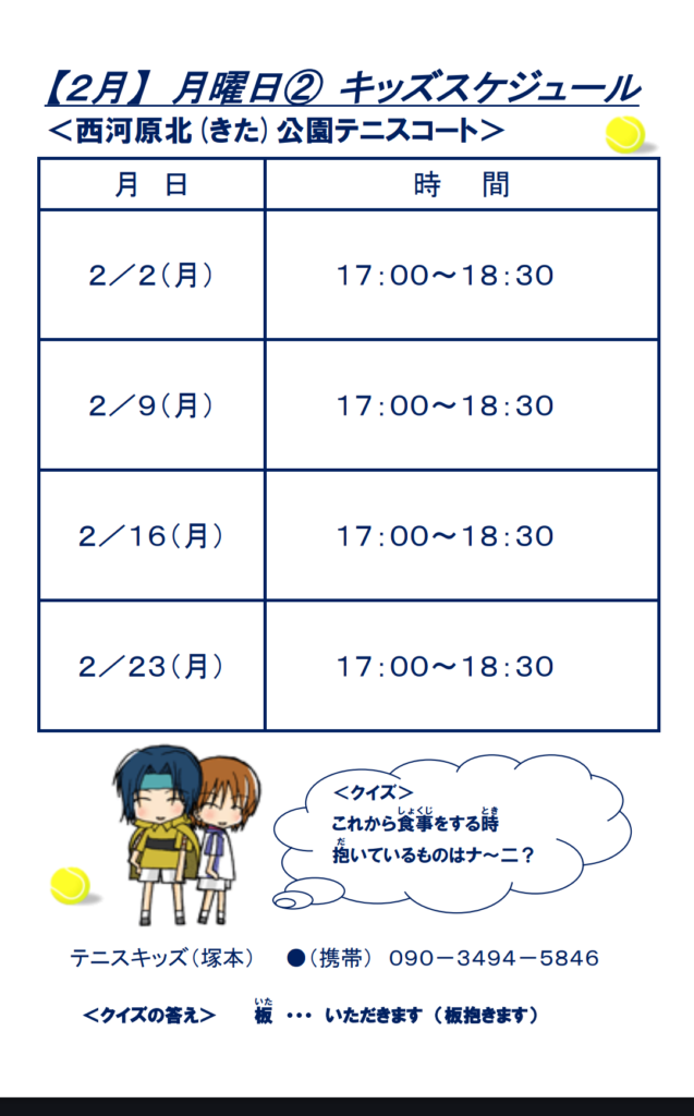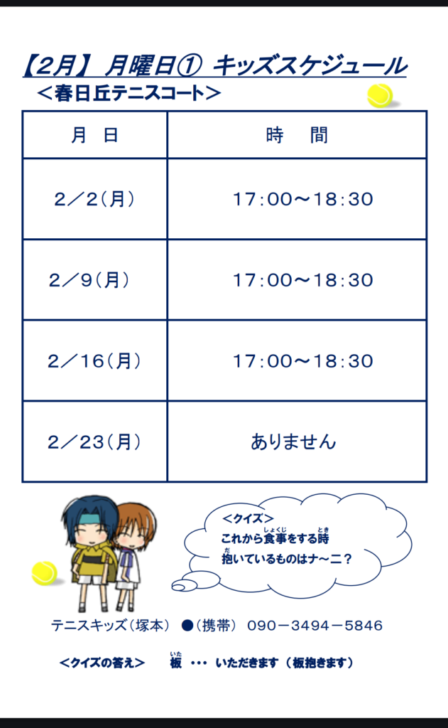 2月ジュニアスケジュール
