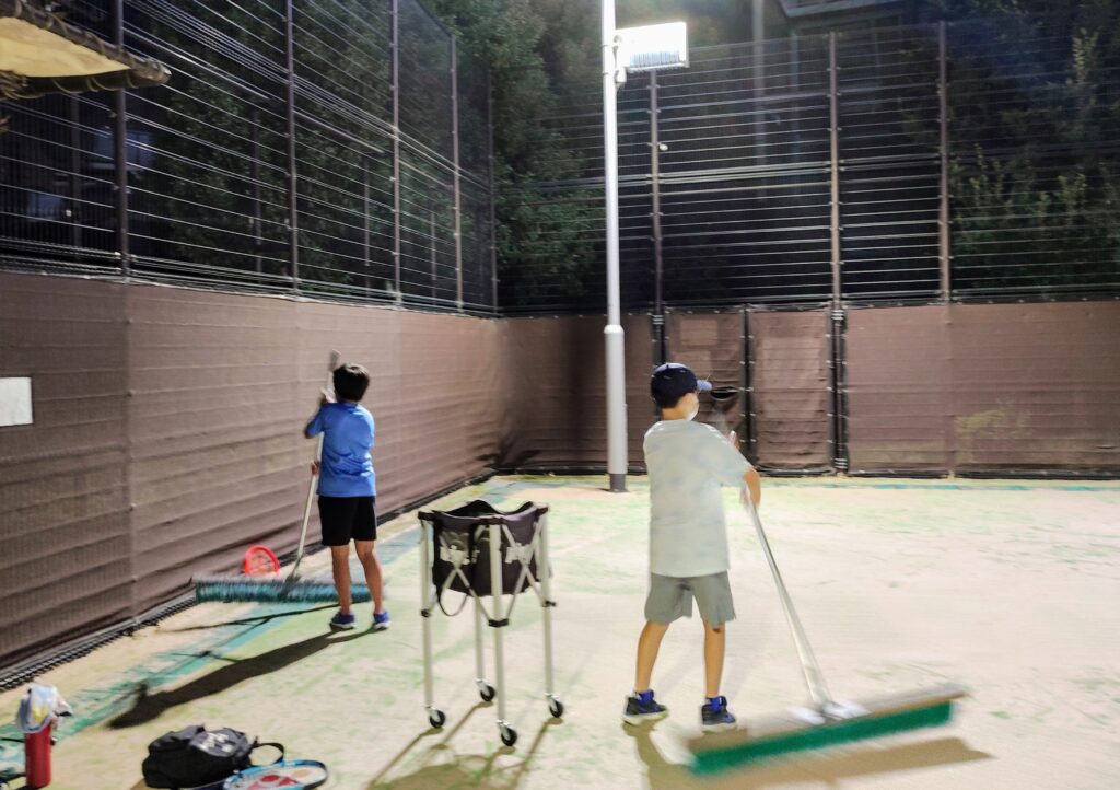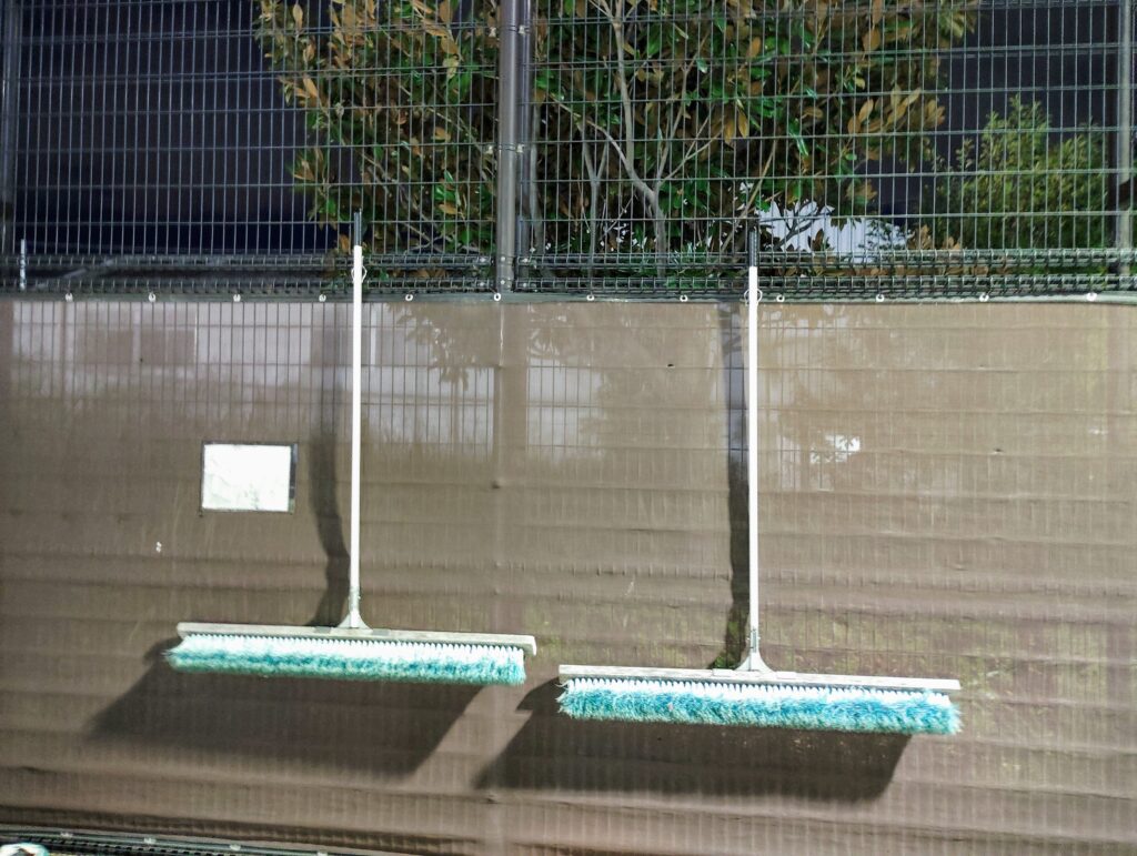 ブラシやトンボ、ローラーとコートに合わせたいろいろな方法がありますが、いつも練習してるコートではブラシがけ!